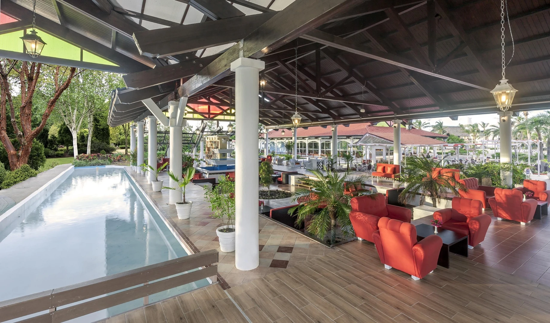 Vstupná hala s recepciou, 3 bazény, 1 bufetová reštaurácia, 3 à la carte reštaurácie, 5 barov (vrátane 2 snack barov), terasa, zmenáreň, parkovisko, wellness zóna, posilňovňa, diskotéka, kaderníctvo, obchod so suvenírmi a viac.