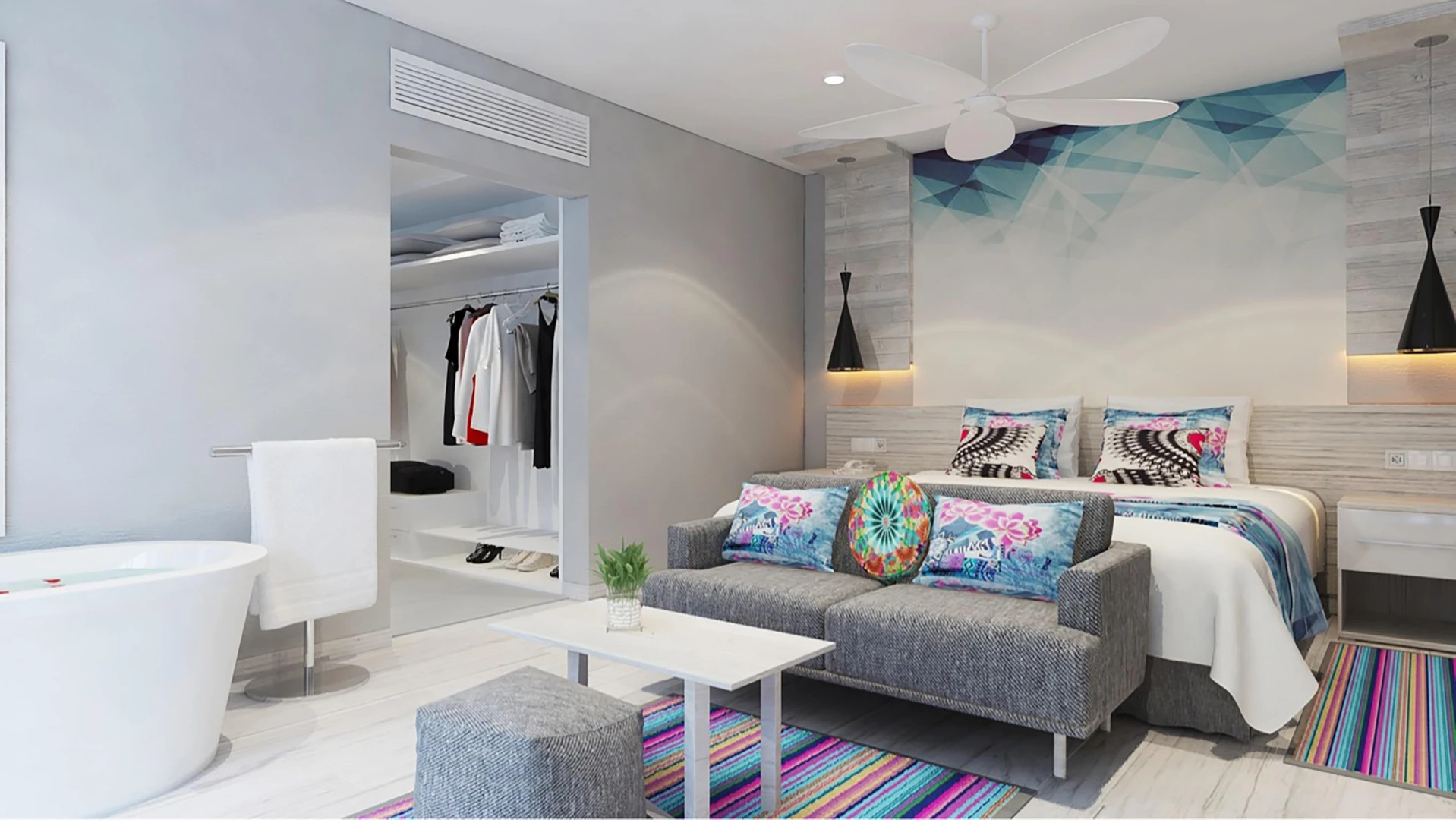 Hotel má celkovo 301 izieb: vrátane dvojlôžkových izieb s vybavením ako kúpeľňa/WC (sušič vlasov), klimatizácia, TV/sat., minibar a ďalšie. Ponúka tiež špeciálne izby s výhľadom na more a Superior izby s dodatočnými výhodami.