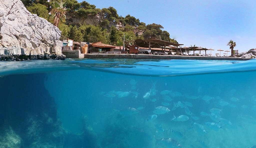 Hotel je situovaný priamo pri piesočnato-kamienkovej pláži s miestami kamenným podložím. K dispozícii sú ležadlá a slnečníky zadarmo, ako aj osušky za kauciu. Na pláži sa nachádzajú aj dva bary, ktoré poskytujú občerstvenie a nápoje priamo pri vode.